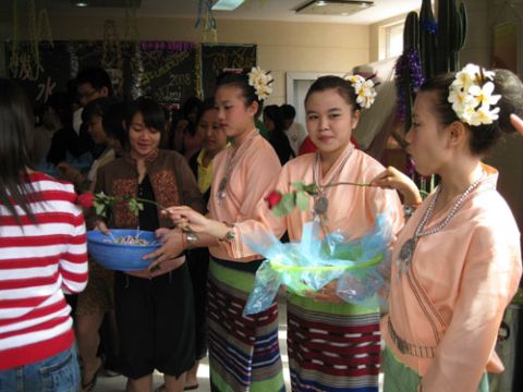 主办,云南海外交流协会与云南师范大学承办的“缅甸、泰国、老挝汉语言大专学历班”2006级学员在昆明进行了泼水节庆祝活动。