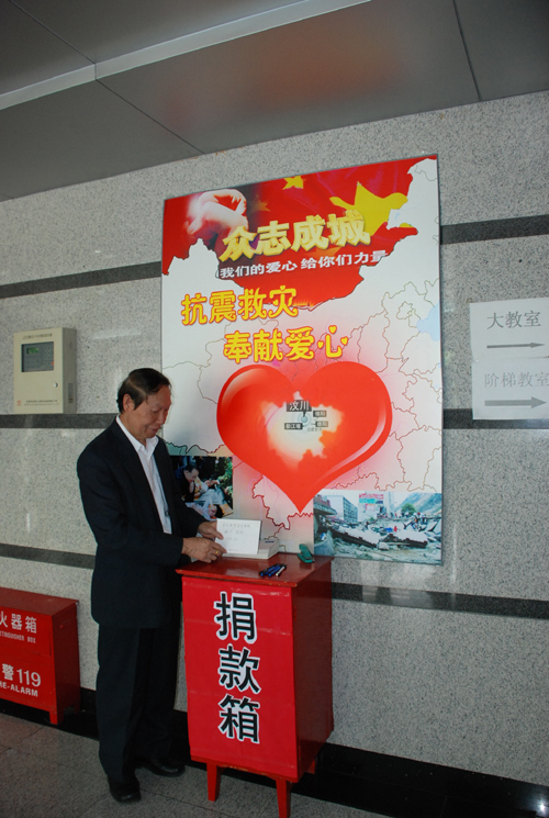 自灾害发生以来,北京华文学院已经先后多次组织了向灾区人民献爱心捐款活动,而人们,特别是海外留学生们的捐助热情高涨。为此,北京华文学院在学生公寓楼设置了募捐箱,继续为灾区同胞奉献爱心。(北京华文学院 康晓娟供稿)