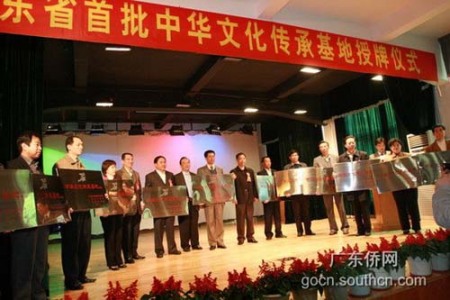 广东省人民政府侨务办公室、教育厅、文化厅、旅游局今年在全广东省114个候选单位中确定了37家学校、人文景观和历史名胜为首批中华文化传承基地,目的是通过不断整合广东省文化资源,将基地建设成为面向海外华侨华人的“传授民族语言,传播中华文化,体验民俗风情,展现建设成就”的综合性服务基地,从而更好地适应海外华侨华人的文化需求,进一步扩大岭南文化在海外的知名度和影响,通过华裔新生代促进中外文化交流,更好地为建设文化大省服务。(林克风 陈雪婷)