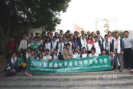 首次由广东佛山市顺德区外事侨务局、澳洲顺德联谊总会、纽西兰顺德同乡会三方主办的“情系顺德——2008澳纽顺德华裔学生冬令营”于1月14日闭营,25名来自澳大利亚和纽西兰的顺德华裔青少年参加了闭营式暨联欢晚会。