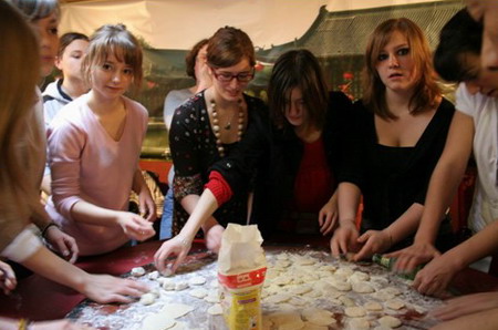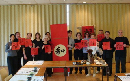 春节前,普瓦提埃大学孔子学院组织了“包饺子,过大年”的活动,三十多名法国中学生与其他汉语学习者自己动手,包出皮薄馅香的饺子。同时,普瓦提埃大学孔子学院的书法老师前往周边的城市,给当地的社团讲授书法课,法国朋友在欣赏汉字和书法的美妙之余,也拿起毛笔学写中国字。