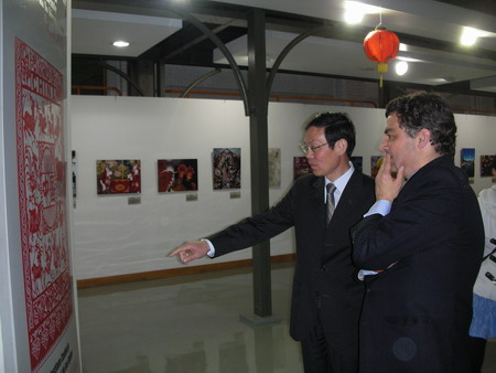 会谈结束后,李长华大使在校方负责人陪同下观看了“北京,欢迎你”图片展。
