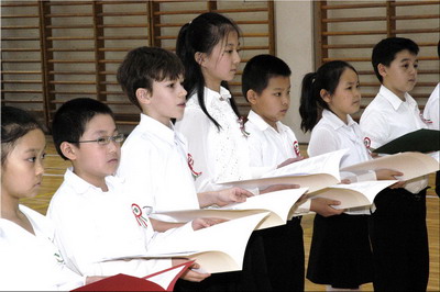 四年级的同学们用中匈两种语言表演了诗朗诵。诗中讲到:1848年3月15日是匈牙利共和国最重要的节日之一,每年的这一天,我们举国庆祝。大街上的行人,无论男女老幼,衣服上都佩戴着匈牙利国旗的标志,这是人民的怀念。我们不会忘记,裴多菲、优凱特、科舒特----还有众多的英烈,我们会永远记住他门,从而在任何时候都能汲取力量和勇气,为构建一个更美好的新世界而奋斗。