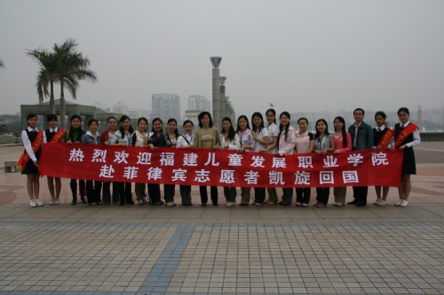 福建儿童发展职业学院赴菲律宾志愿者圆满完成2007年的教学工作,陆续回国休假并进行相关培训。本次回国志愿者分五批次由菲律宾返回,3月28日是志愿者回国较为集中的一天,学院副院长郑健成亲自率队到厦门迎接,并在厦门机场发表了讲话,对志愿者的工作给予充分肯定,希望他们再接再厉,在今后的工作中继续发扬奉献的精神。