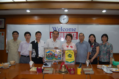 颜长城主席的陪同下,参观了侨中学院的体育馆、电脑室、语音室等设施。在会客室里,宾主双方进行了亲切友好的交谈。菲华教中心副主席黄端铭通过多媒体向来宾汇报了中心多年来开展的工作以及与中国有关机构交流合作的情况。李晓梅副主任详细介绍了中国