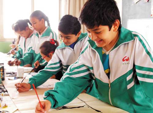 小学部二年级的韩国学生蒋惠琳是去年2月来到群星学校的。入学以来,她很快就融入到中国学生当中,每当老师问:“吃饭习惯吗?你怎么不吃特意给你们韩国学生做的饭呢?”她回答说:“没关系!这样我会更快习惯中国饭菜。”一段时间后,她就能和中国学生一起生活,学习中文进步特快。没多久,小女孩就成了她父母学中文的老师,有时还为父母生意上的事当起翻译。