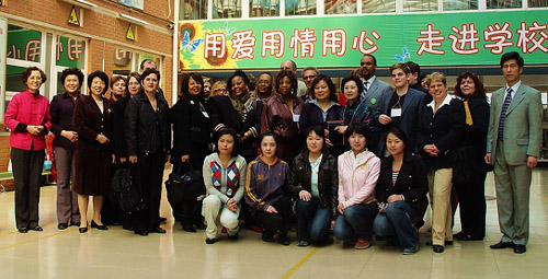 4月25日,美国纽约教育访问团一行22人,来到北京市崇文区参观考察了崇文小学和汇文中学。