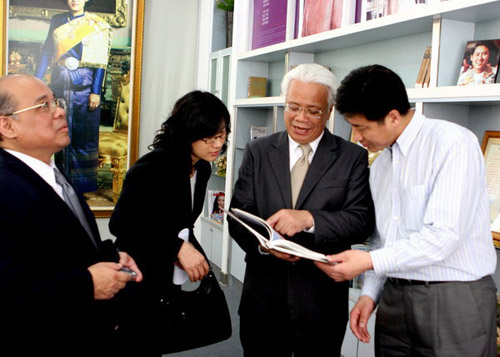 泰王国驻华大使马纳塔先生28日在泰王国驻厦门领事馆总领事伟萨努先生的陪同下访问华侨大学华文学院,受到华文学院领导赵明光、陈旋波、张灯的热情接待。