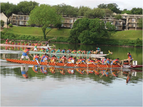 龙舟赛在奥斯汀南部的节日海滩(festival beach) 举行。今年共有12个队参加。除了奥斯汀本市的Freescale (原摩托罗拉)、Del、IBM、UT(德州大学奥斯汀分校)、长城中文学校、奥斯汀警官等队外,休斯顿热队也来参加了比赛。