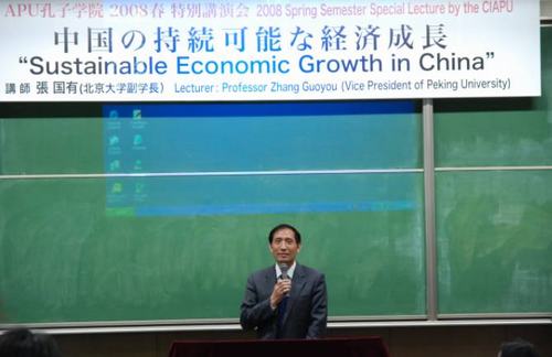 5月19日,日本APU孔子学院举行了2008年春季特别演讲会,北京大学副校长张国有教授以《中国经济的可持续发展》为题发表了演讲。APU副校长药师寺公夫教授和孔子学院院长是永骏教授分别致辞,对张国有教授特意前来APU演讲表示欢迎和感谢。