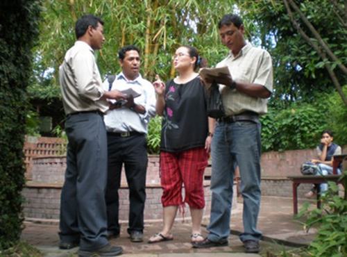 商利伟老师带领第一组学生来到风景秀丽的Sundara Zal开设汉语角,师生们在青山绿水间畅谈汉语学习的方法和意义。张希颖老师则带领导第二组学生走进古老的杜巴广场和千佛塔,这组学生多为从事中文导游工作,他们对景点的中文讲解有着强烈的需求和浓厚的兴趣,希望老师更多地给他们介绍宗教故事和传说。