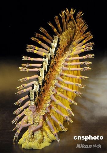 艺术团团长、聋人舞蹈家邰丽华率领二十名聋人演员表演了舞蹈“千手观音”,这一经典保留节目再次以美轮美奂的造型和优美的舞姿征服了现场观众。观众用齐刷刷的掌声表达自己的感动。刚刚从加州大学圣地亚哥分校毕业的殷海杰用不太流利的中文告诉记者,尽管他生在美国、长在美国,但他非常喜欢“千手观音”这个节目,聋人能表演得这么完美,很了不起。