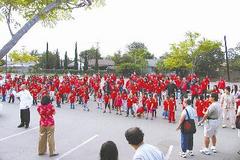 之后郑耀辉请全校师生到停车场集合,拉开架势,动手练习。两百多人穿上统一的红色校服,一招一式,有模有样,场面相当壮观。一些来接学生的非华裔家长看得手痒难耐,也纷纷加入练拳的行列。无论大人孩子,都初步领略了太极功夫的魅力。(李大明)