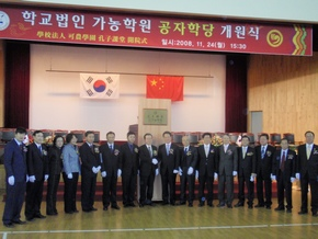 11月24日,在中国驻韩国大使馆的积极推动与大力支持下,经中国孔子学院总部批准,由中国河北省第四十二中学与韩国京畿道泰成中·高等学校合作建立的韩国首家孔子课堂在韩国京畿道龙仁市正式成立。程永华大使到会祝贺,并与京畿道知事金文洙一起为孔子课堂成立揭幕。