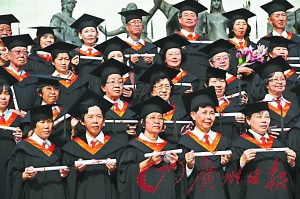 两鬓已有如雪的银丝,但穿上学士袍、头戴“大方帽”,他们却都笑得像孩子一样。1月4日,暨南大学华文学院举办海外函授华文教育本科专业毕业典礼,46名印尼籍学员不远千里到广州,亲手从暨大副校长贾益民手中接过证书。这些“大学毕业生”中,50岁以上的中老年人比比皆是。薄薄一纸证书后面,是他们六年的苦读和对华文教育的坚持。