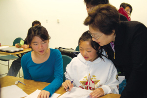 8日虽然是星期日,但是一直利用周末及周日给孩子们上中文课的华夏中文学校,当天大约有900名孩子在这里学习,高年级的孩子还在进行AP考试的模拟考试。在校园里,到处都可以看见手拿中文书籍的孩子。