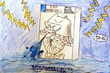 据新加坡《联合早报》报道,新加坡立伟小学五年级学生董芷伶(10岁),根据鱼尾狮在2月28日被雷电击中的新闻事件,回家做“如何救护鱼尾狮”的漫画功课时,想起爸爸妈妈经常谈起上班经过ERP,必须缴交昂贵的过路费,于是动起让ERP来保护鱼尾狮的念头。