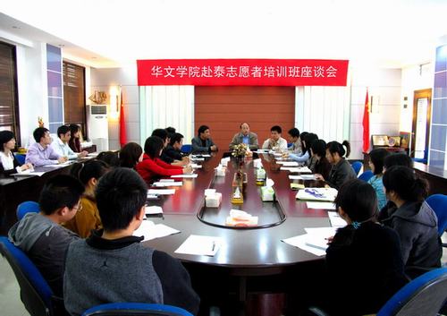 根据国家汉语国际推广领导小组办公室关于国际汉语教师志愿者相关工作部署,华侨大学华文学院已经着手落实志愿者相关培训工作。3月31日,华文学院领导主持召开赴泰志愿者培训座谈会,旨在让每一位参与选拔培训的同学深刻认识到志愿任务的光荣和艰巨。