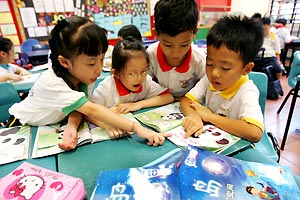 新加坡教育部在2007年为小学一二年级推出校本课程,要教师自行设计20%到30%的教学内容。各校教师可依据学生的水平,配合时事、兴趣、环境,编写具有学校特色的课程。