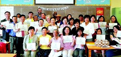 据美国《世界日报》报道,位于纽约法拉盛的东西方国际学习学校成人中文班6月13日举行结业式,全班30位各族裔学生齐聚一堂共享学习成果。学员们不但能用普通话相互问候,还能清楚说出电话号码,他们觉得该语言课程有趣又实用,还相约下学期再回来上课。