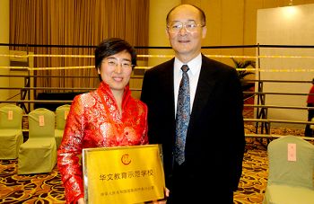 开幕式上,国务院侨办和中国海外交流协会还举行了首批海外华文教育示范学校授牌仪式,共有22个国家的58所海外华校获此殊荣。其中巴西有两家中文学校获授牌,华侨天主堂中文学校为圣保罗唯一授牌中文学校,该校老师吴桂秋受肖思佳校长委派出席会议并接受授牌。