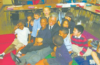 据美国《世界日报》报道,中国驻洛杉矶总领事张云、教育参赞陈准民及教育组副领事王义,11月3日参观了位于巴沙迪那联合学区的公立布班克小学幼稚园及一年级沉浸式中文教学班。近30名年龄不满7岁、来自不同族裔的小朋友异口同声,以一口纯正普通话“您好,欢迎您”问候来宾,张云啧啧称赞,不禁抱起小朋友,连说:“谢谢,谢谢!”