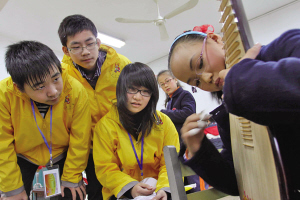 温州少艺校的同学向华裔青少年演示民族乐器。(刘伟摄)