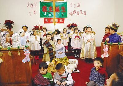 美华中文学校校长蔡美白说,该校有上百名学生,年龄在3到13岁之间,大部分是父母来自福建、本人在美国出生的亚裔孩子。学校为迎合不同学生的需求,为美国出生的孩子设立了中文特别班,为大陆出生的孩子设立英文特别班,孩子们中英文都说得很棒。(林菁)
