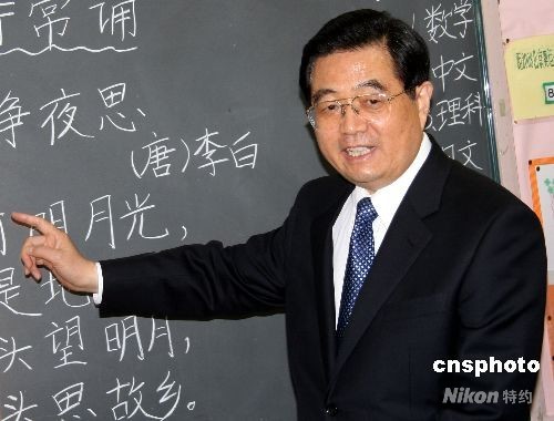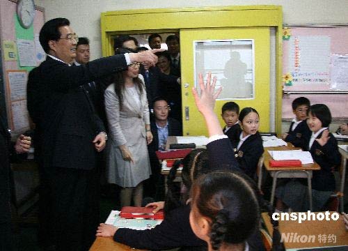 5月9日下午,正在日本进行国事访问的中国国家主席胡锦涛及夫人刘永清参观了横滨山手中华学校,受到该校全体师生的热烈欢迎。