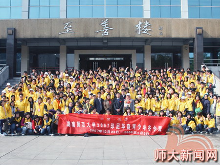 据来自湖南师范大学网站的消息,2007年印尼华裔青少年冬令营开营仪式于12月29日在湖南师范大学举行。湖南省外侨办副主任阳春娥及220余名营员一起参加了开营仪式。