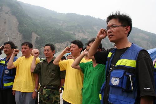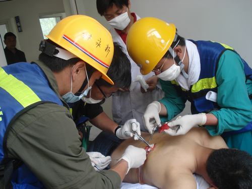 14日从成都到达都江堰后,医疗队迅即奔赴震中汶川县映秀镇。坐冲锋舟渡过岷江后,为了将药品能送进灾区,队员们只随身带了三天的干粮和四瓶水,四五十斤的行囊内几乎全是药品。到达道路完全堵塞的映秀镇还有3公里的“路”程,严格说来,还不能叫路,山体滑坡已经把路掩成了如同一个废墟,下面是波涛滚滚的岷江,当地人称之为“生死谷”,就在队员们到达时的前两天,已经有4人葬身在这乱石丛中或摔进奔腾的岷江。路遇从映秀走出的村民,他们摇头说,你们不可能背负着这些药品到达映秀的。
