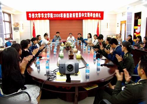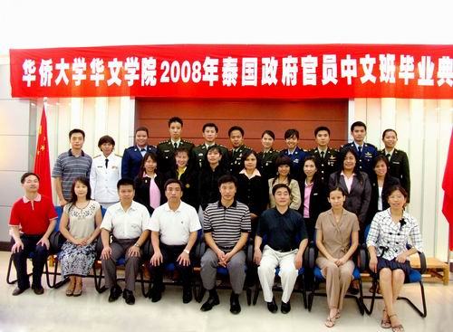 华侨大学2008年泰国政府官员中文学习班毕业典礼于7月9日下午在华侨大学华文学院1号楼会议室举行。来自泰国泰国国防部、农业与合作部、商业部、卫生部和中央警察局的25名政府官员圆满完成学业,将返回各自工作岗位。