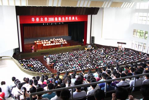 华侨大学2008级新生开学典礼9月8日上午在泉州校区陈嘉庚纪念堂观众厅举行。泉州市副市长潘燕燕,校领导吴承业、李冀闽、朱琦环、吴季怀、徐西鹏、张禹东,老领导王福起、李孙忠出席。副校长关一凡主持典礼。