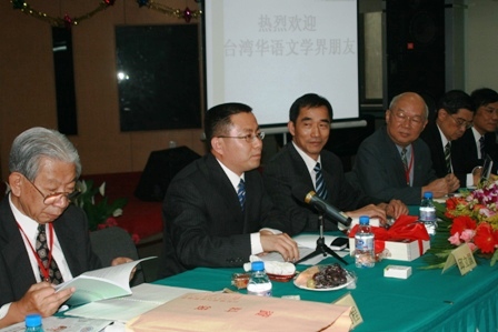 2008年9月11日,台湾华语文学界大陆学术交流访问团在世界华语文教育学会会长董鹏程和世界华语文教育学会监事长何福田的带领下访问北京华文学院。