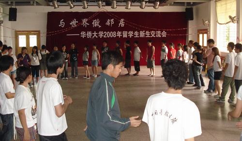 来自11个国家近100名2008级留学生10月12日下午参加了由华侨大学留学生联络部在金川学生活动中心举行的以“与世界做邻居”为主题的华侨大学2008级留学生新生交流会。