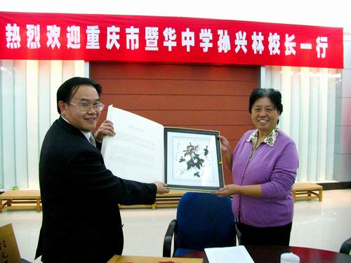 11月28日,重庆市暨华中学孙兴林校长一行4人访问华侨大学华文学院。华侨大学华文学院常务副院长金宁、副院长陈旋波会见了来访客人。