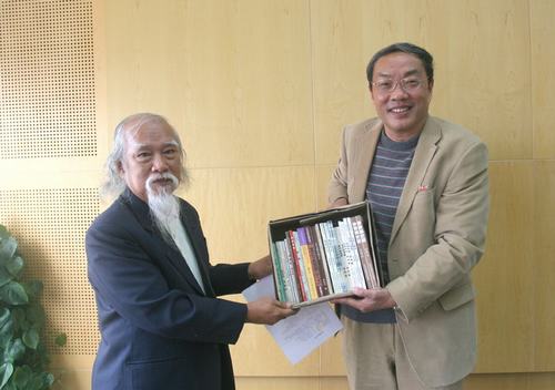 吴岸、田英成等海外媒体的记者,还向华侨大学赠送了海外华文文学和海外华侨华人研究的珍贵资料,吴承业代表学校接受了赠书。