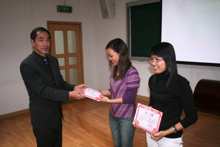 2008年12月4日下午,“中文语言培训班”汉语演讲比赛在北京华文学院顺利举行。此次演讲比赛共有29名同学参加,其中有许多同学才学了3个多月的汉语。演讲内容涉及到祖国介绍、北京生活、学院游教活动、语言学习等。他们的演讲声情并茂,博得了阵阵掌声。尤其是两位越南学员带来的相声表演非常精彩,超出了评委的预期,被授予特别奖。