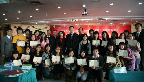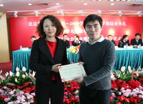 1月9日,北京华文学院大专学历班23名华裔学子喜获由新加坡金鹰国际集团提供的“金鹰奖学金”。中国华文教育基金会秘书长杜志滨、新加坡金鹰国际集团代表孟永红、北京华文学院院长彭俊为获奖学生颁奖。