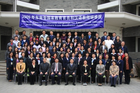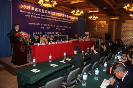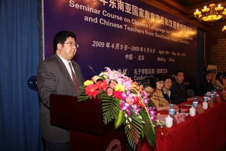 2009年4月10日上午,孔子学院总部/国家汉办项目“东南亚国家教育官员和汉语教师研修班”开班仪式在国务院侨办白鹭园培训中心举行。孔子学院总部/国家汉办师资处杨金成处长、国侨办华教处邱立国处长出席开班仪式并讲话。