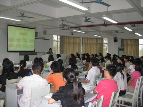 4月24日的赴泰宣讲团由国家汉办志愿者中心项目官员邵旭波老师带领,来自云南、广西等地的五名优秀志愿者分别从教学、心理、泰文化礼仪及志愿者到任离任手续等各方面,为暨大志愿者培训班学员做了详细的介绍和说明。邵老师同时在宣讲会上表示,暨南大学作为广东省唯一派出汉语教师志愿者的高校,在泰汉语教师人数在国内派出单位中位居第二,是我国外派志愿者的重要合作单位,暨南大学的志愿者的表现多次获得泰国教育部基础教育委员会、中驻泰大使馆教育组及任教学校的好评,希望2009年赴泰志愿者戒骄戒躁,更好地完成国家赋予的汉语教学任务。