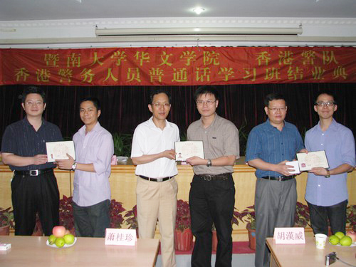 暨南大学华文学院开办的香港警务人员普通话培训班已逾9年,超过2000名香港警察参加了基础班、提高班、历史文化游学班等短期普通话培训课程,成效显著。近年来,随着香港社会普通话水平的不断提高,学员们对普通话培训形式、内容和层次的要求越来越高,对普通话培训工作提出了各种新的要求。华文学院根据学员们的学习需求,对培训课程进行了改动,并在本期培训班教学中进行实施。
