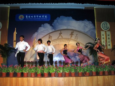 晚会伊始播放的华文教育系宣传片《希望之星》,全面介绍了华文教育专业的创办背景、专业建设、学生情况,丰富详实的录像和图片资料也让观众更好地了解了华文教育专业的历史和办学情况。一段婀娜多姿、独具东南亚风情的老挝、印尼舞蹈中正式拉开晚会序幕。