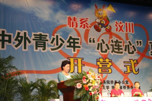 7月22日,“情系汶川——中外青少年‘心连心’夏令营”开营式在陕西师范大学长安校区终南音乐厅举行。夏令营由国侨办主办,陕西师范大学与陕西省侨办承办,西安中学协办,营员包括来自四川、重庆、甘肃和陕西等四省市地震灾区的450名中小学生和50名老师及工作人员。国侨办副主任赵阳、陕西省政府副省长朱静芝等出席开营式并发表热情洋溢的讲话。