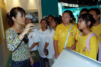 7月25日,营员们手拉着手,在绵绵细雨中,一起走进省科学普及教育基地———西双版纳自然博物馆。在讲解老师的解说下,营员们对我州自然保护区、生物圈保护区、热带雨林、动植物等方面的知识有了初步了解。