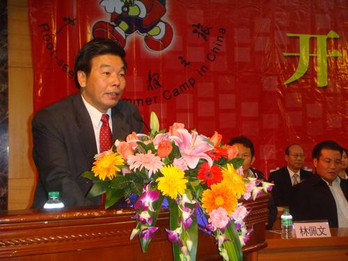 福建省侨办文宣处副处长林建华给南安夏令营授旗