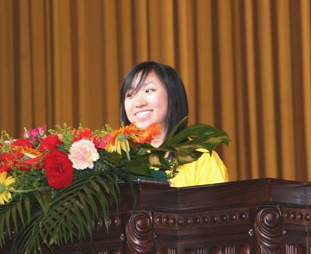 当五千余名海外华裔青少年聚集在北京人民大会堂中欢庆“2OO6年海外华裔及港澳台地区青少年中国寻根之旅夏令营”开营,来自美国加州的周亮妤无疑是其中最耀眼的明星之一。全美总统学者奖获得者、世界名校哈佛大学一年级学生、作为五千海外华裔青少年代表在人民大会堂发表演讲……一个个光环笼罩在这位漂亮、恬静的小姑娘头顶。