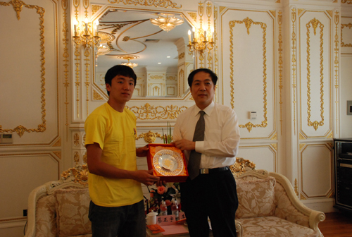 上海市政协副主席李良园向夏令营青少年代表赠送礼品
