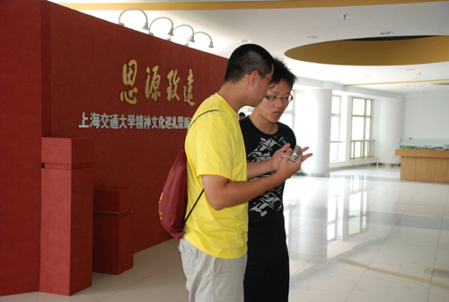 在交大国际合作与交流处的黄新昌老师带领下,营员们先后参观了上海交大校园模型、文化和科技成果展和木兰纪念馆。来自交大船舶海洋与建筑工程学院和外国语学院的大学生们和营员们一路展开了友好交流。每到一处,营员们都表现出了很高的兴趣,不时向交大的老师和同学提出问题。