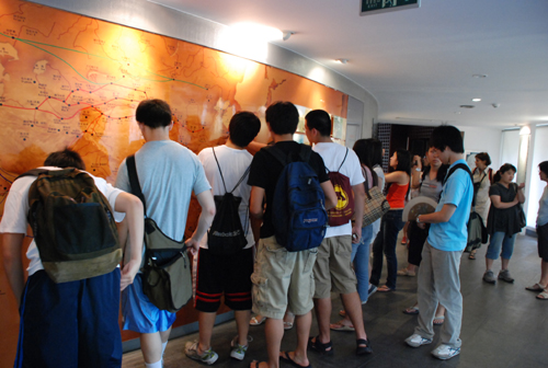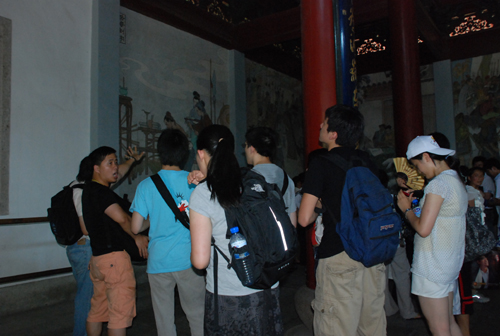 营员们参观岳母刺字壁画,感受岳飞精忠报国精神